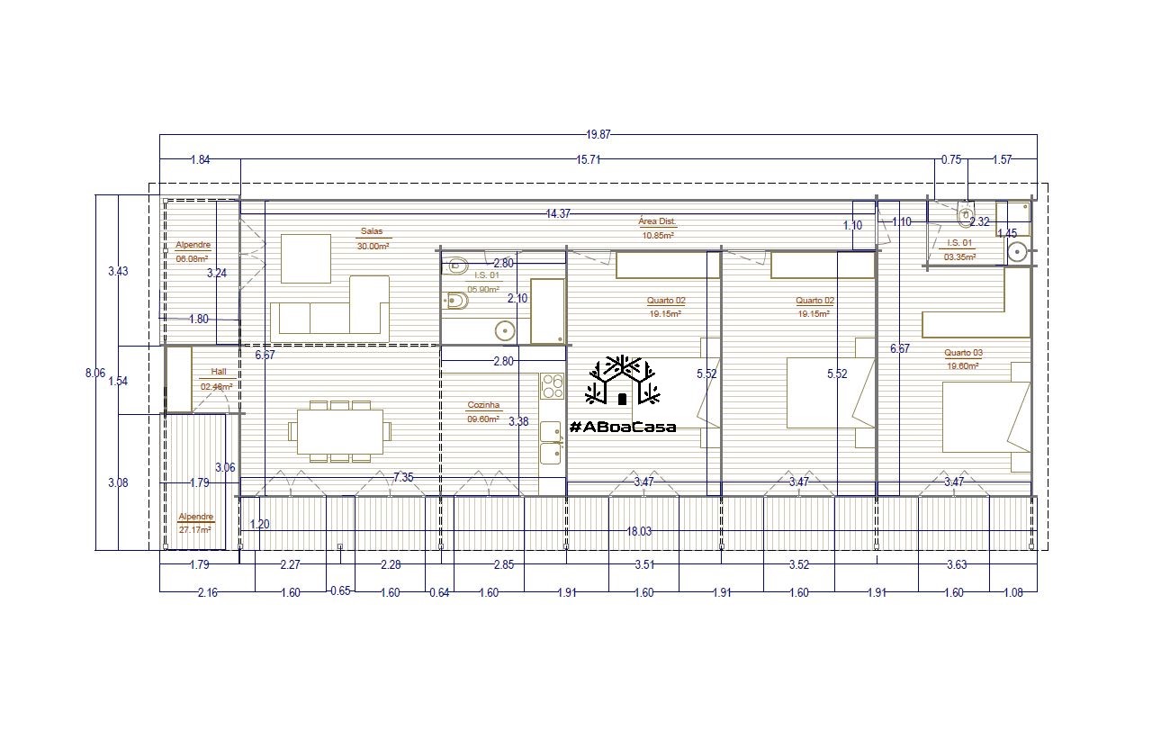 Dimensões exteriores (L x C) – 19,91m x 6,96m