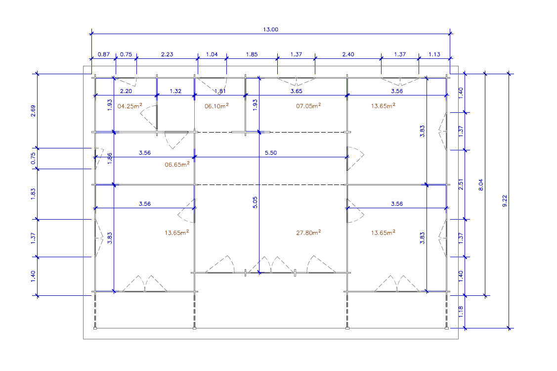 Dimensões exteriores (L x C) – 13m x 9,20m
